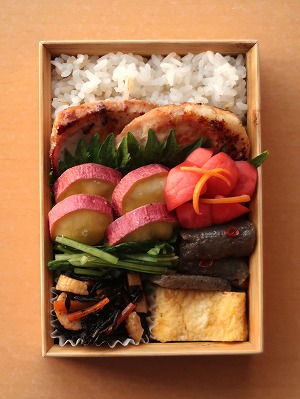本日の弁当: 庄内豚の味噌漬け焼き → さつまいもの素揚げ → 壬生菜の浅漬け 芽ひじきとちくわの炒め煮 → 二十日大···